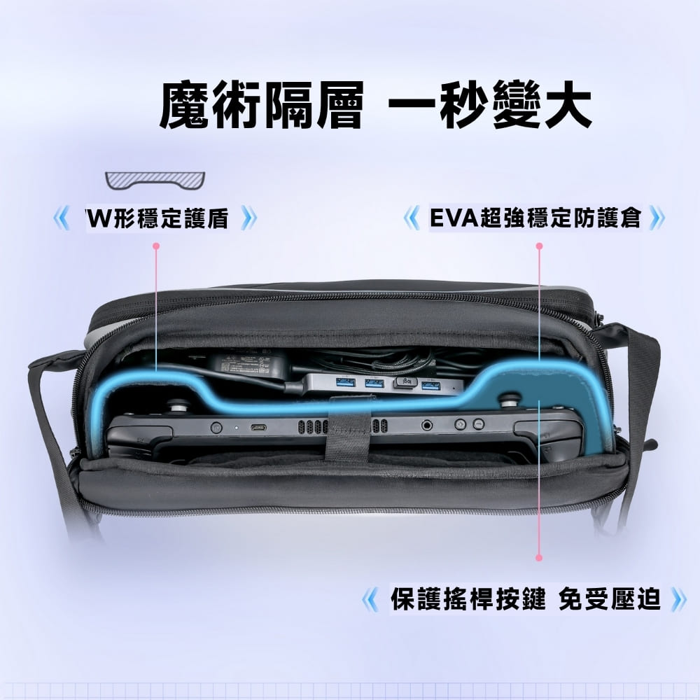 ●超大容量:可同時收納主機、手把、充電器、線材與日常小物。