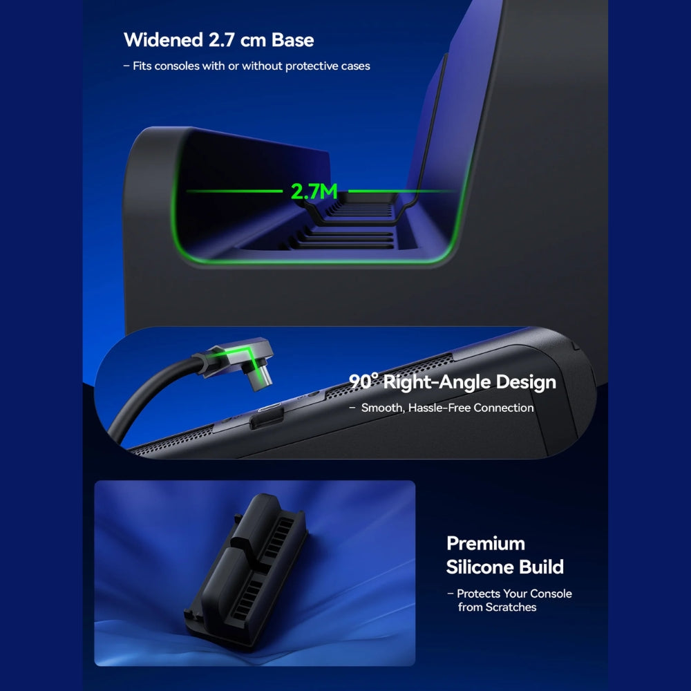 ● 防滑矽膠底座:穩固支撐主機,不傾倒、不刮傷,單手即可輕鬆插拔。